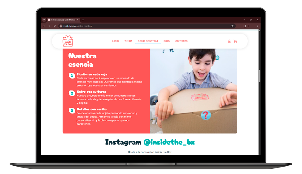 Inside the box nació como una idea con propósito —crear experiencias de regalo únicas para peques—, y en Kybumo la transformamos en una marca viva, coherente y lista para crecer online.